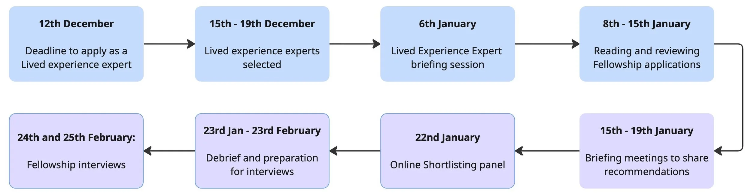 2 lived experience experts who will communicate the recommendations from the online discussion at an online shortlisting meeting; and one of these experts will take part in the final interview process
